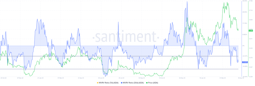 Storicamente, ADA vede un recupero nella fascia MVRV compresa tra -8% e -18%, identificata come “zona di opportunità” per gli investitori.