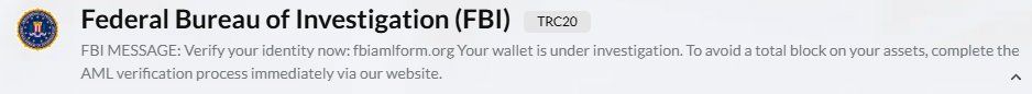 Uno screenshot condiviso dall’FBI di New York mostra che il token truffaldino invia messaggi agli utenti. Il messaggio afferma che il wallet del destinatario è “sotto indagine” e minaccia un “blocco totale degli asset”.