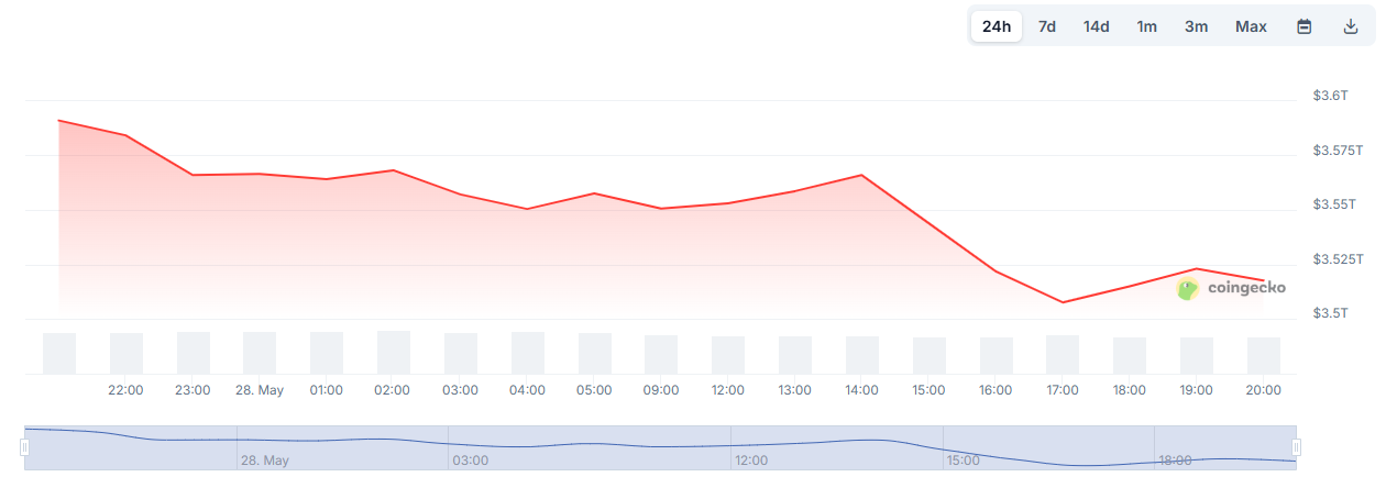 Il mercato crypto ha visto una lieve correzione a seguito della pubblicazione dei verbali della riunione di maggio della Fed degli Stati Uniti. Bitcoin ed Ethereum sono scesi di circa 2% martedì sera, mentre Solana e XRP sono diminuiti del 4%.