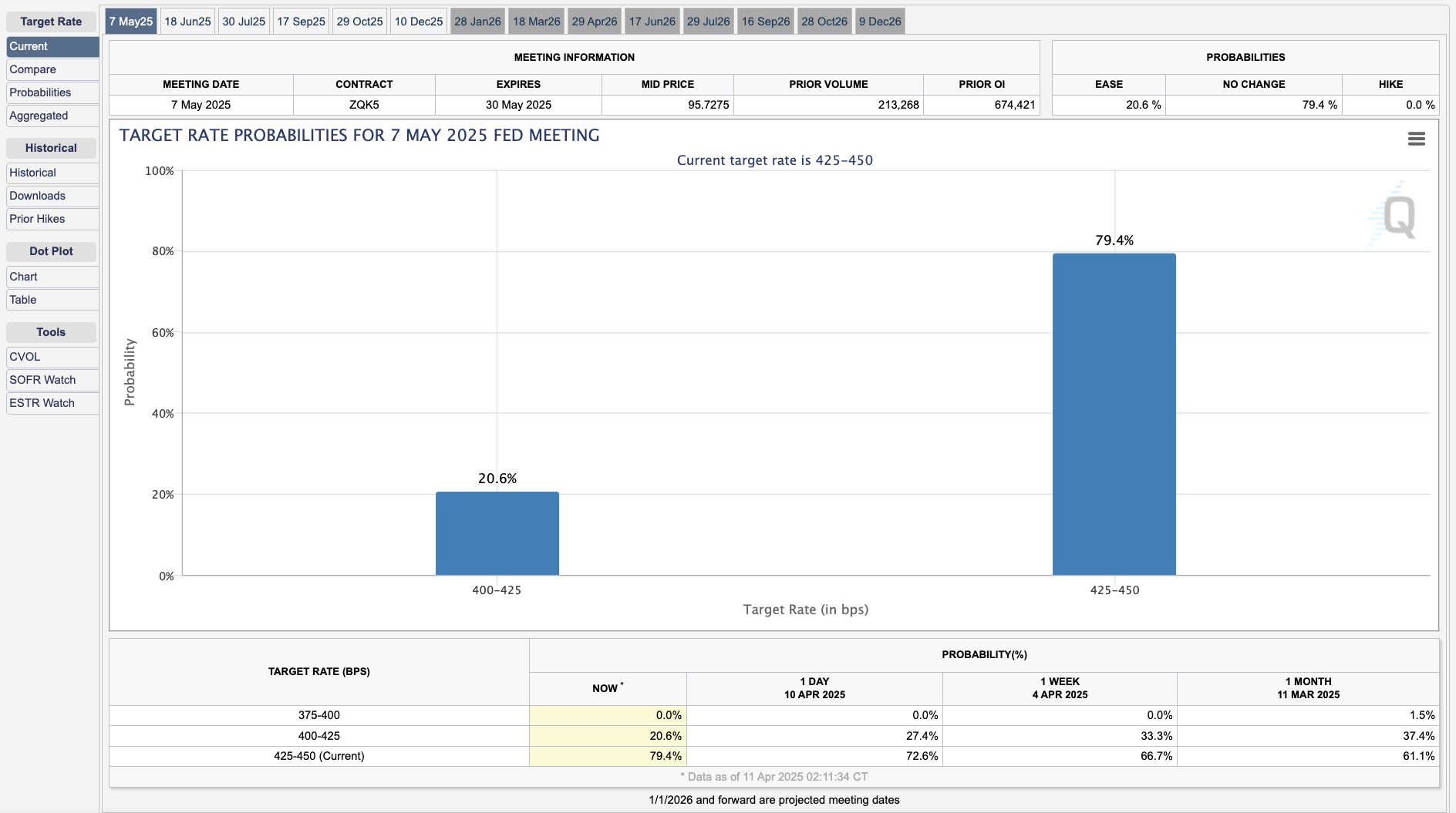 In altre parole, la situazione dei dazi non cambia la bassa probabilità della Federal Reserve di tagliare i tassi di interesse.