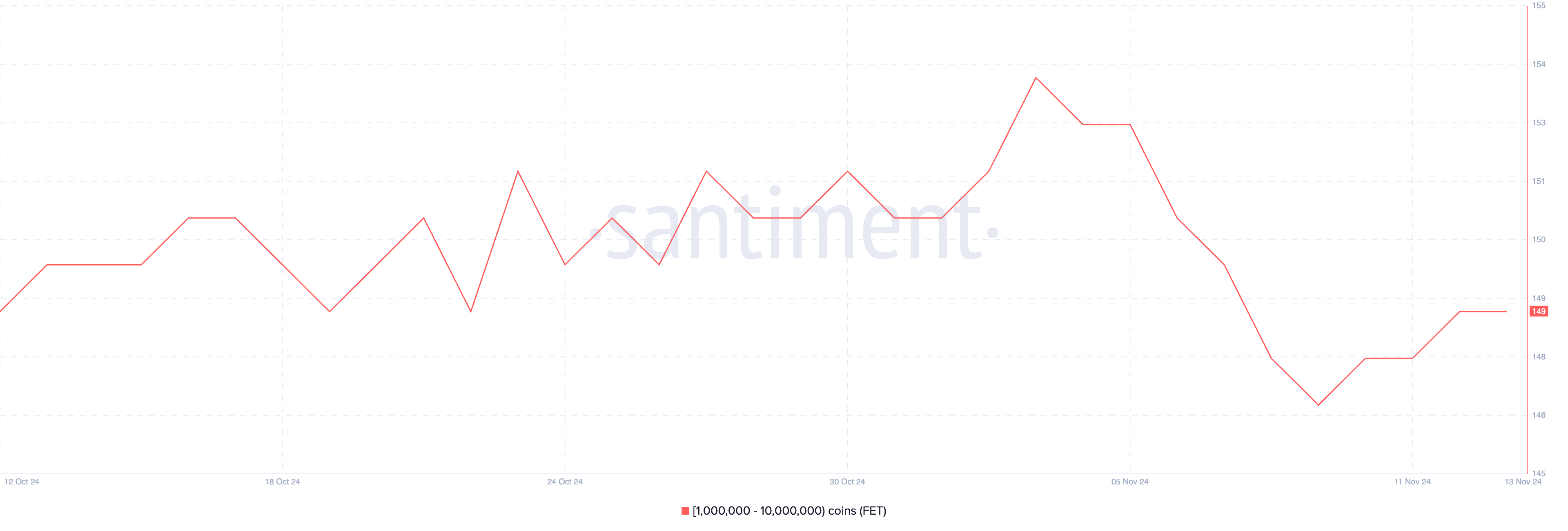 Il numero di indirizzi che detengono tra 1 000 000 e 10 000 000 di FET attualmente è di 149, in calo rispetto ai 153 del 3 novembre. Da quel giorno fino al 9 novembre, questa cifra è diminuita costantemente, toccando il minimo di 147.
