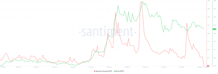 Il prezzo di Fetch.ai, al momento della scrittura, è vicino a registrare un drawdown a causa del calo del supporto da parte degli investitori. La crescita della rete è scesa al minimo di sette mesi dopo l’impennata durante il recente rally.