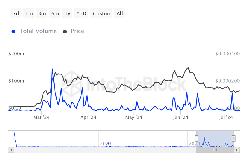 L’aumento dell’attività tra gli indirizzi delle whale è evidenziato da una significativa impennata del volume delle transazioni. Recentemente, il volume delle transazioni di valore superiore a 100.000 dollari è salito a 63 milioni di dollari, segnando un notevole aumento rispetto ai livelli precedenti.
