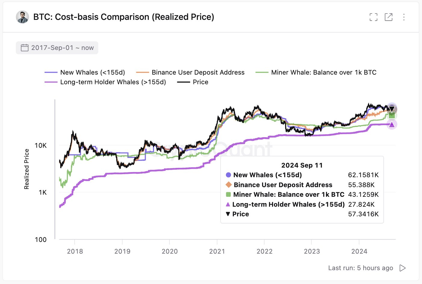 Gli afflussi positivi si verificano quando il costo base degli investitori degli ETF Bitcoin è superiore al prezzo di Bitcoin. Ki Young Ju, CEO di CryptoQuant, ha notato che il costo base per “Nuovi Portafogli Custodiali/ETF” è di 62.000 USD, mentre Bitcoin si aggira intorno ai 57.000 USD.