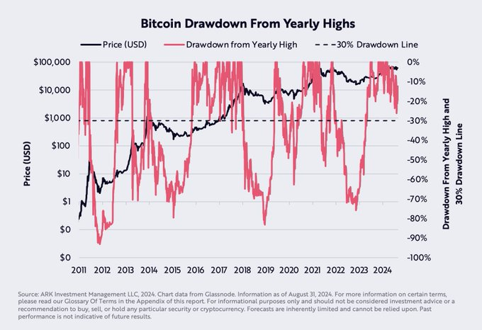 “Misurato rispetto ai massimi annuali di Bitcoin, il calo del prezzo del 2024 suggerisce ancora il tipo di correzione storicamente associata alle tendenze primarie rialziste di Bitcoin, come quelle viste nel 2016 e nel 2017,” ha dichiarato Puell.