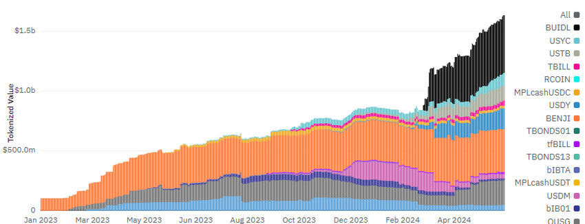 Operatori chiave come BlackRock e Franklin Templeton stanno guidando la carica. Il fondo di cassa token BUIDL di BlackRock, valutato 481,42 milioni di dollari, ha recentemente superato il fondo BENJI di Franklin Templeton, valutato 357,68 milioni di dollari, diventando il più grande. I fondi speculativi e i market maker di criptovalute sfruttano il BUIDL come garanzia per scambiare monete e token.