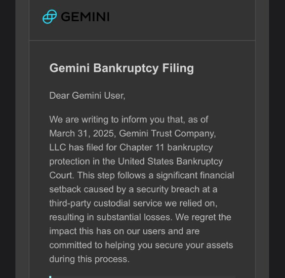 Molti account hanno evidenziato la truffa sui social media, indicando che un’email in circolazione affermava falsamente che Gemini avesse dichiarato bancarotta. L’email istruiva gli utenti su come ritirare i propri fondi verso un wallet Exodus e forniva una seed phrase.