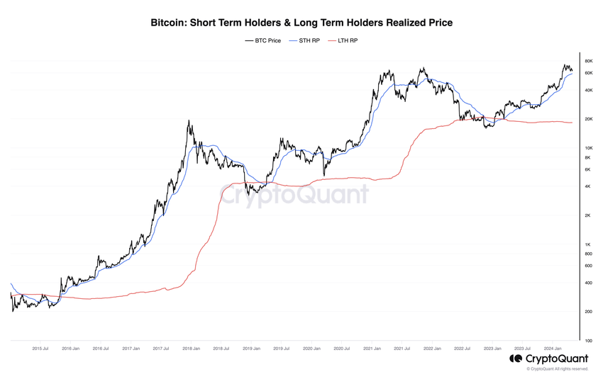 Crypto SunMoon, un noto analista coreano, offre una prospettiva rialzista. Secondo SunMoon, se Bitcoin rimane in un mercato rialzista, il prezzo realizzato del Short-Term Holder (STH), a 59.000$, è una linea di supporto critica.