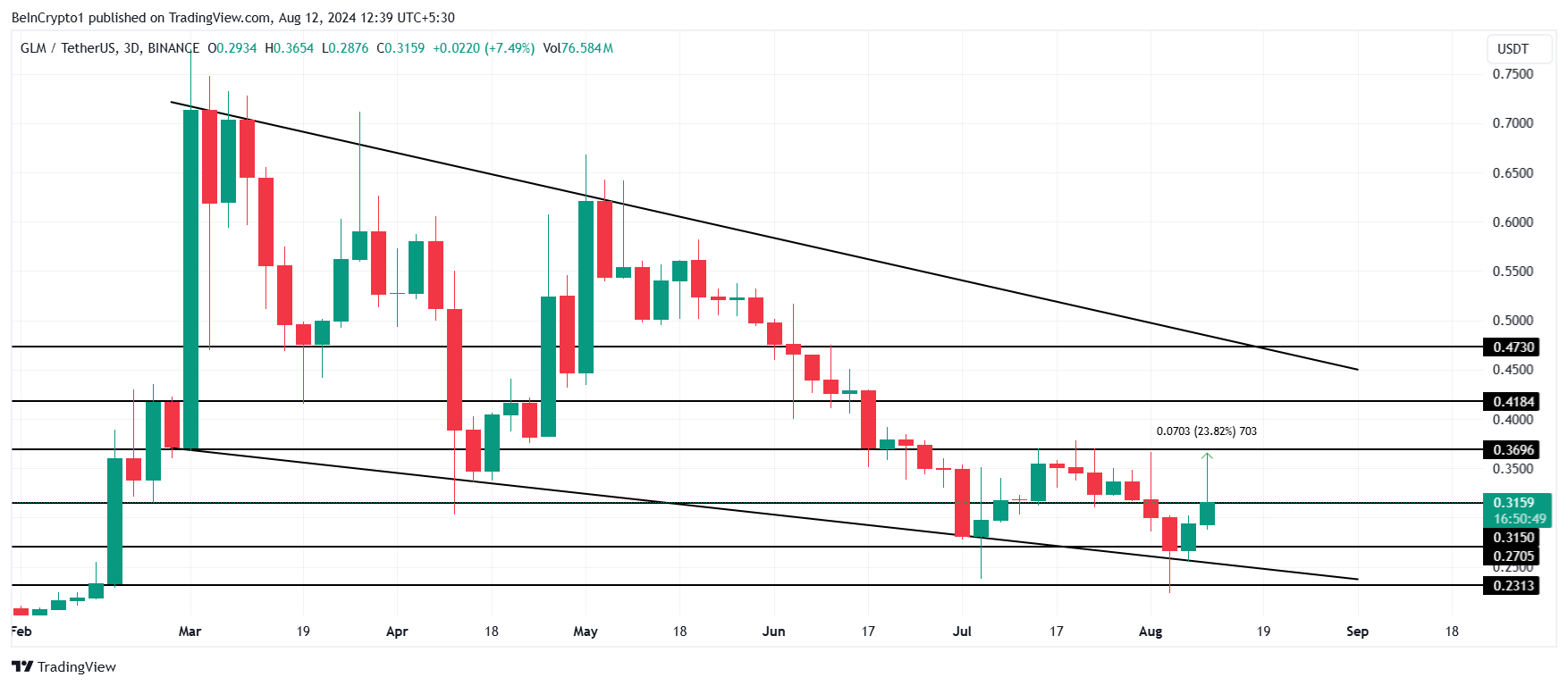 Il prezzo di Golem (GLM) è pronto per un potenziale rialzo, che potrebbe far salire il prezzo e potenzialmente formare un nuovo massimo storico.