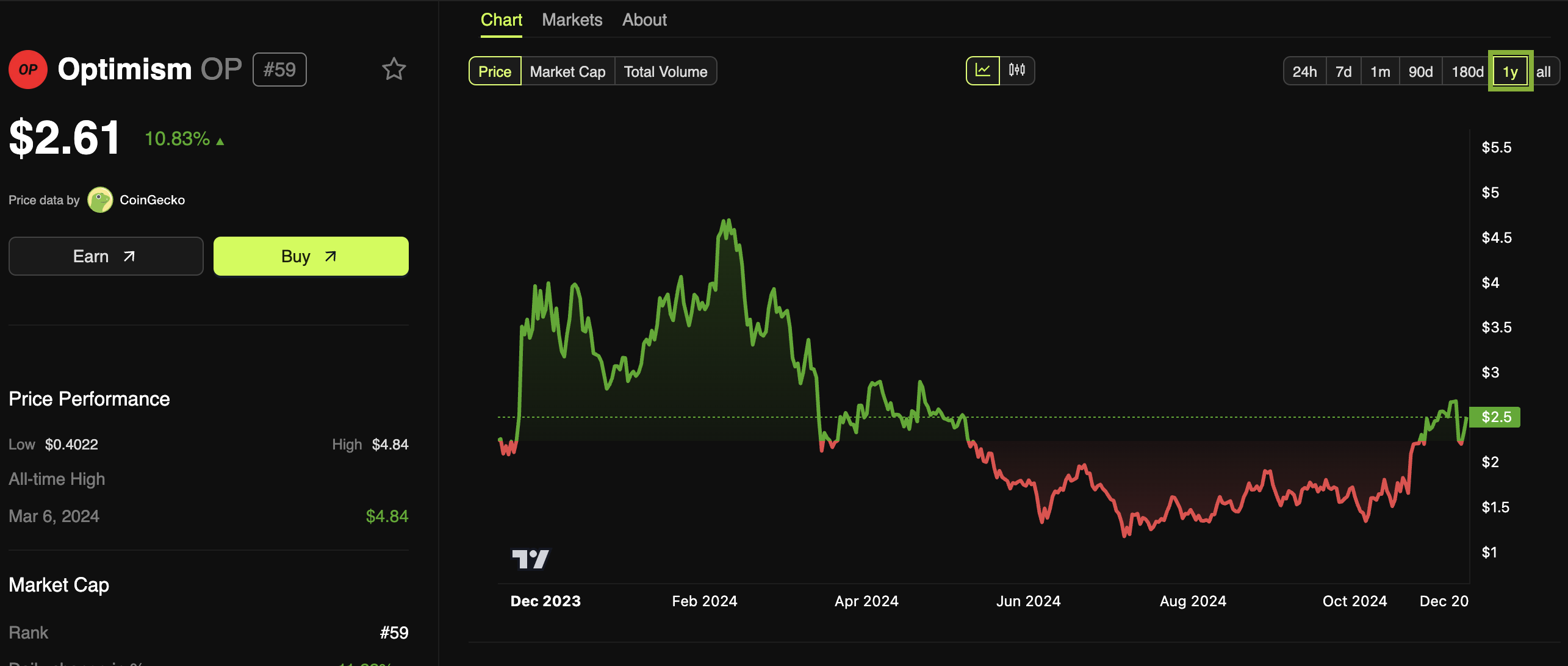 Entrambi i protocolli condividono alcune somiglianze oltre al loro utilizzo di Ethereum. Optimism, una soluzione di scalabilità rollup, ha visto movimenti di prezzo drammatici nell’ultimo anno. Sebbene il mercato rialzista generale delle crypto gli abbia dato un nuovo slancio positivo, il valore del token di Optimism ha subito enormi colpi all’inizio di quest’anno.