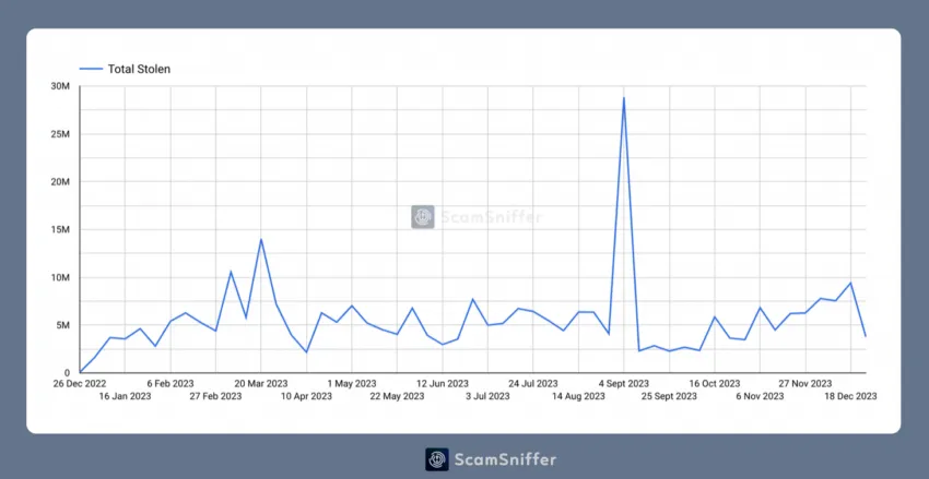 La piattaforma antitruffa Scam Sniffer di Web3 ha rivelato l’allarmante volume di criptovalute sottratte nel 2023 a causa della crescente quantità di sofisticate truffe di phishing.