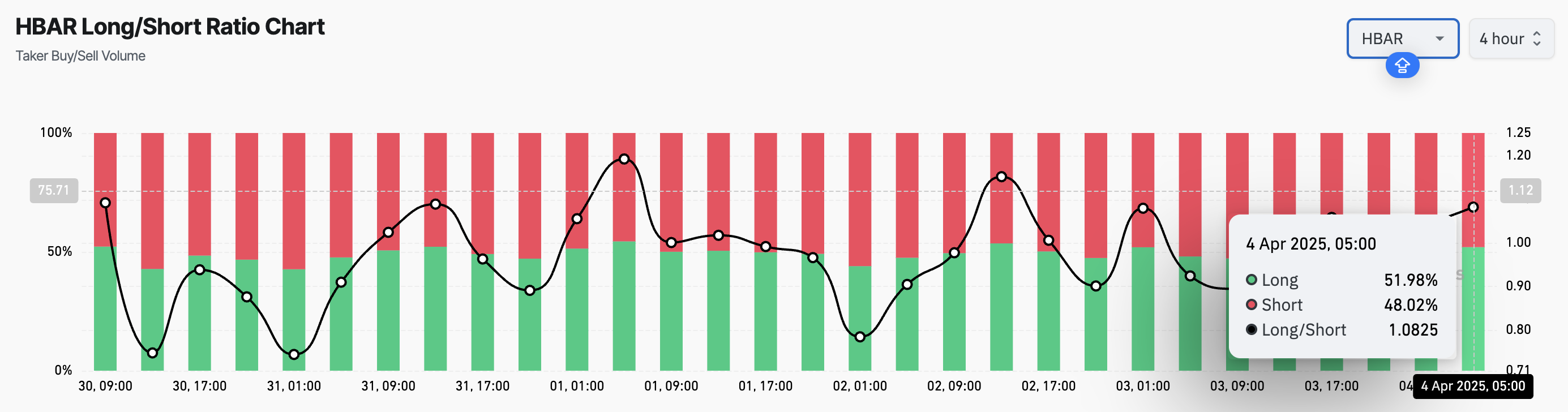 Il rapporto long/short di HBAR attualmente si attesta a un massimo mensile di 1,08. Nelle ultime 24 ore, il suo valore è aumentato del 17%, riflettendo l’aumento della domanda per le posizioni long tra i trader di derivati.