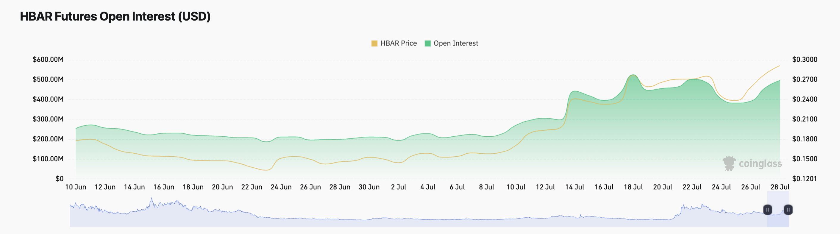 Secondo Coinglass, l’open interest di HBAR è aumentato dell’8% nelle ultime 24 ore, raggiungendo $497 milioni, anche se il prezzo del token è in calo. Questo è tipicamente visto come un campanello di allarme, poiché indica che vengono aperte più posizioni future, scommettendo su ulteriori cali.