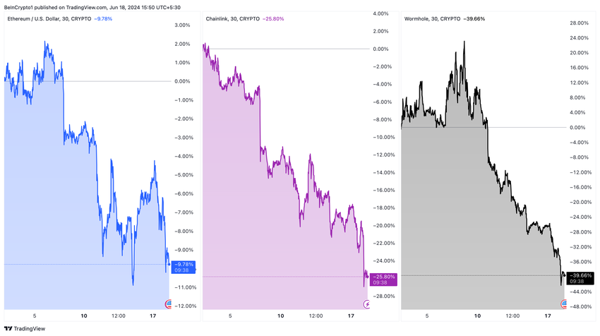 SponsoredAd esempio, Ethereum ha registrato un notevole calo di oltre il 10%, Chainlink ha subito un declino del 26% e alcuni investimenti, come Wormhole, hanno subito perdite considerevoli, con un calo di oltre il 40% nell’ultimo mese.