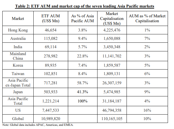 “Il fatto che la quota dell’ETF in percentuale della capitalizzazione di mercato nei sette mercati dell’Asia-Pacifico sia relativamente bassa suggerisce che c’è ancora ampio spazio per un’ulteriore espansione. Evidenzia inoltre il significativo potenziale di crescita della regione mentre gli investimenti indicizzati continuano a maturare”, hanno scritto.