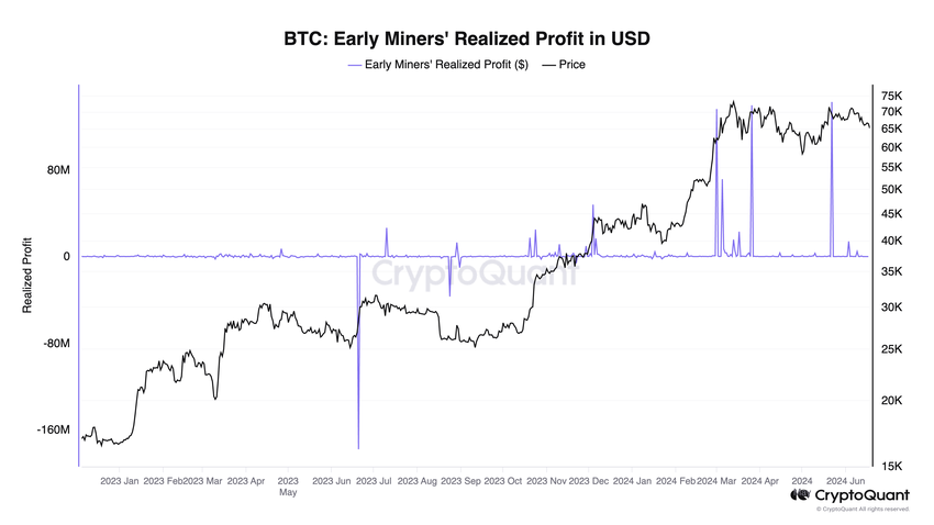Anche i primi minatori di Bitcoin hanno contribuito a svendere. Quest’anno hanno realizzato circa 550 milioni di dollari di profitti quando il Bitcoin scambiava tra 62.000 e 70.000 dollari. Questa tendenza ha intensificato la pressione al ribasso sul prezzo del Bitcoin.