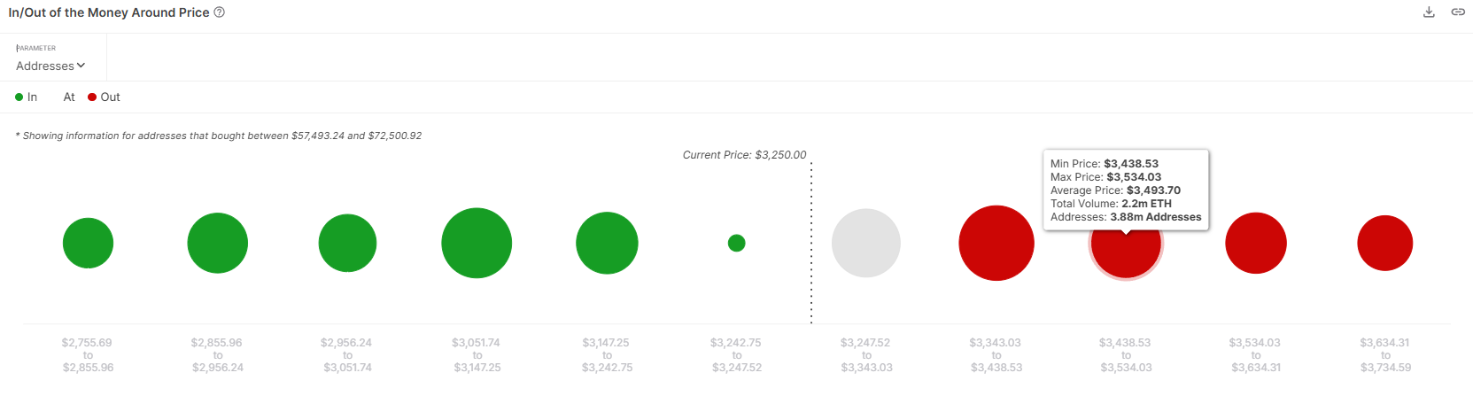 Il più ampio slancio macro per Ethereum suggerisce il potenziale per un recupero. Secondo i dati IOMAP (In/Out of the Money Around Price), il sentimento rialzista dall’accumulo recente potrebbe spingere Ethereum verso il suo prossimo livello di resistenza a 3.524 USD.
