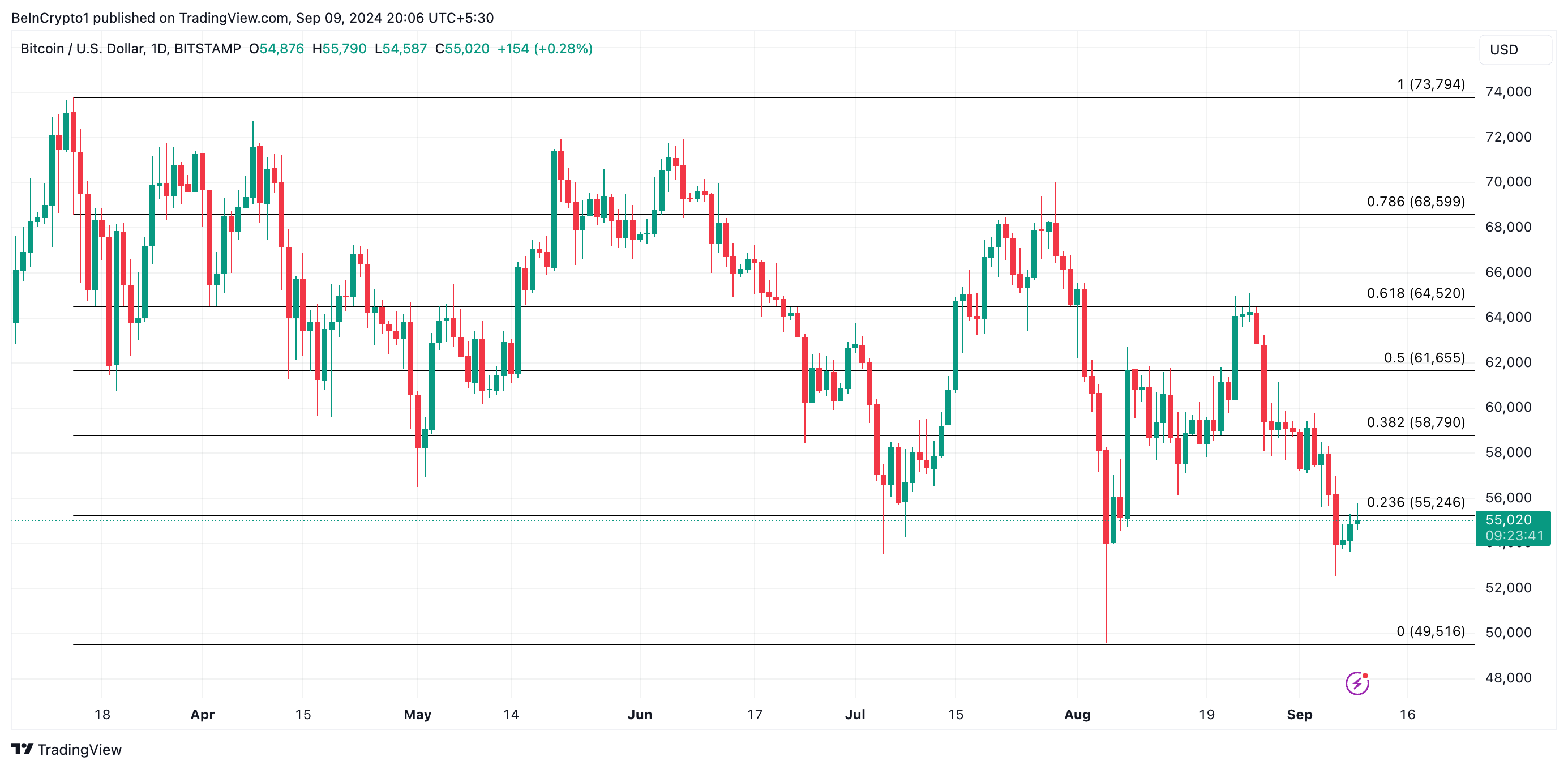 Se la pressione di vendita si intensifica, Bitcoin (BTC) rischia di scendere a 55.246 USD nel breve termine. Se questo livello di supporto non regge, il prezzo potrebbe scendere ulteriormente, scambiando intorno a 49.516 USD.