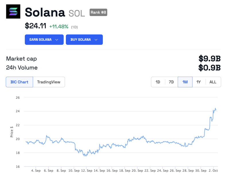 Tra le prime 20 criptovalute in base alla capitalizzazione di mercato, Solana(SOL) ha registrato il più alto guadagno di prezzo nelle 24 ore. Al momento in cui scriviamo, è in commercio a 24,11 dollari, in crescita dell’11,48%. Nel frattempo, BeInCrypto ha riportato che il valore totale bloccato (TVL) di Solana ha raggiunto i 337,49 milioni di dollari, il suo massimo nel 2023.