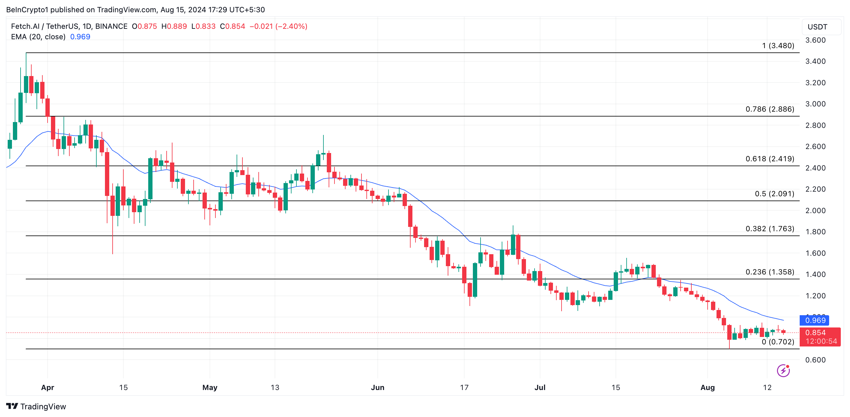 Se il declino di FET dovesse continuare, il suo prezzo potrebbe scendere a 0,70 dollari. L’ultima volta ha scambiato a questo livello il 5 agosto, durante il declino generale del mercato. Tuttavia, se il sentimento del mercato diventa rialzista, il prezzo del token potrebbe rimbalzare e superare 1 dollaro, raggiungendo potenzialmente 1,35 dollari.