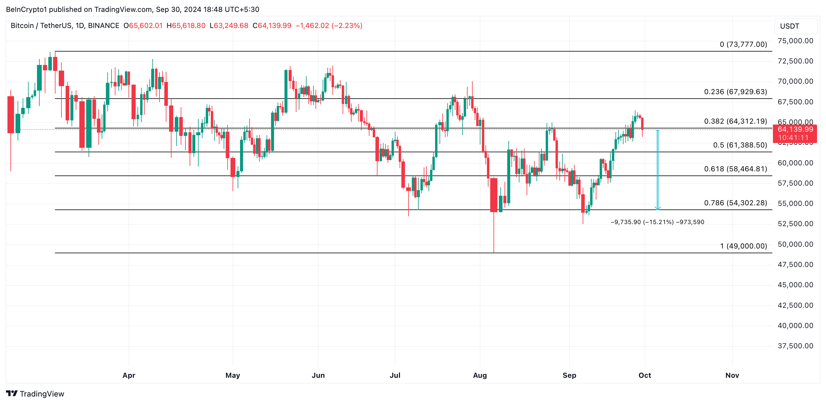 Se il prezzo di Bitcoin corregge, potrebbe crollare del 15% e scambiarsi a 54.302 USD, invalidando la tesi rialzista sopra menzionata.