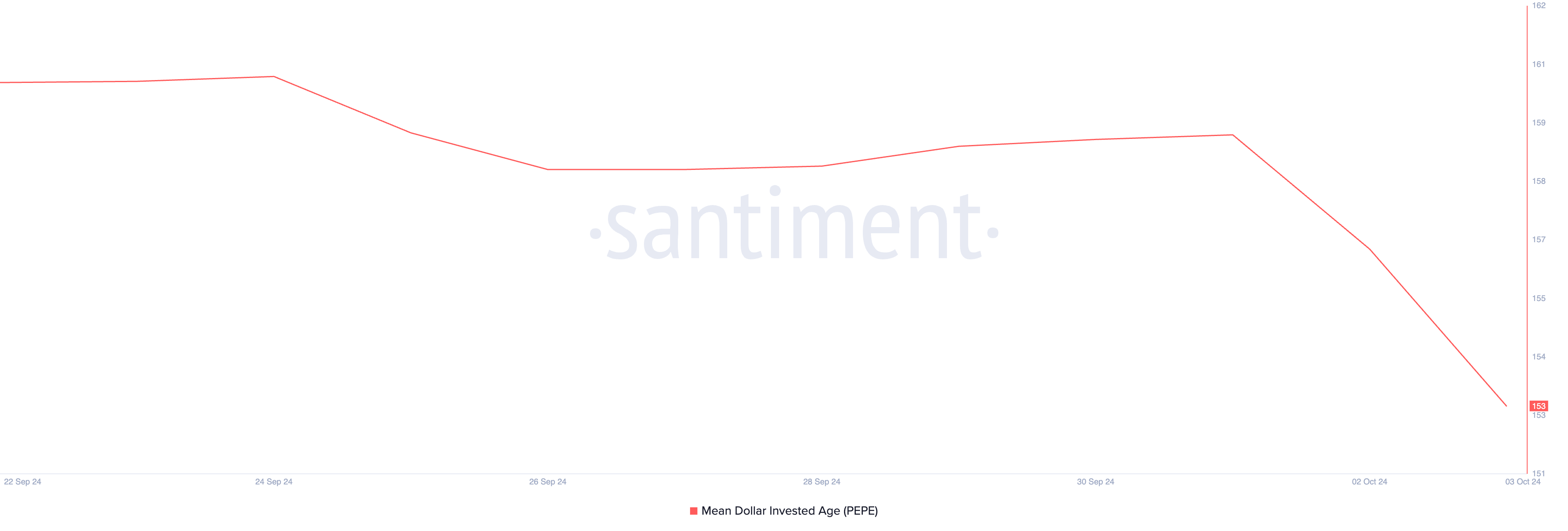 SponsoredInoltre, l’età media investita in dollari di PEPE (MDIA), che misura l’età media delle partecipazioni di un token basata sul loro valore in dollari, evidenzia l’attività di vendita tra i suoi LTHs. A 153 al momento della stampa, ha registrato un calo del 4% dal 1° ottobre.