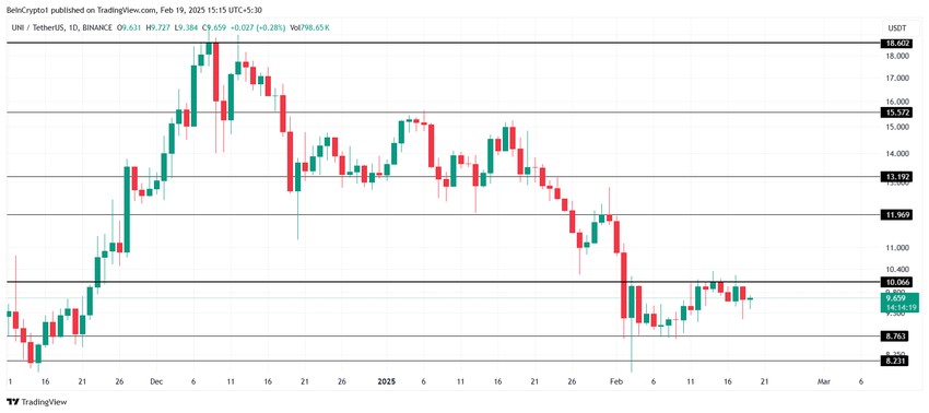 Se questi trend ribassisti continuano, UNI potrebbe consolidarsi all’interno dell’intervallo di $10,06 e $8,76. Questo ritarderebbe qualsiasi potenziale ripresa e lascerebbe anche l’altcoin esposta a ulteriori perdite. Se il prezzo scivola sotto $8,76, potrebbe scendere ulteriormente a $8,23, approfondendo le perdite degli investitori.