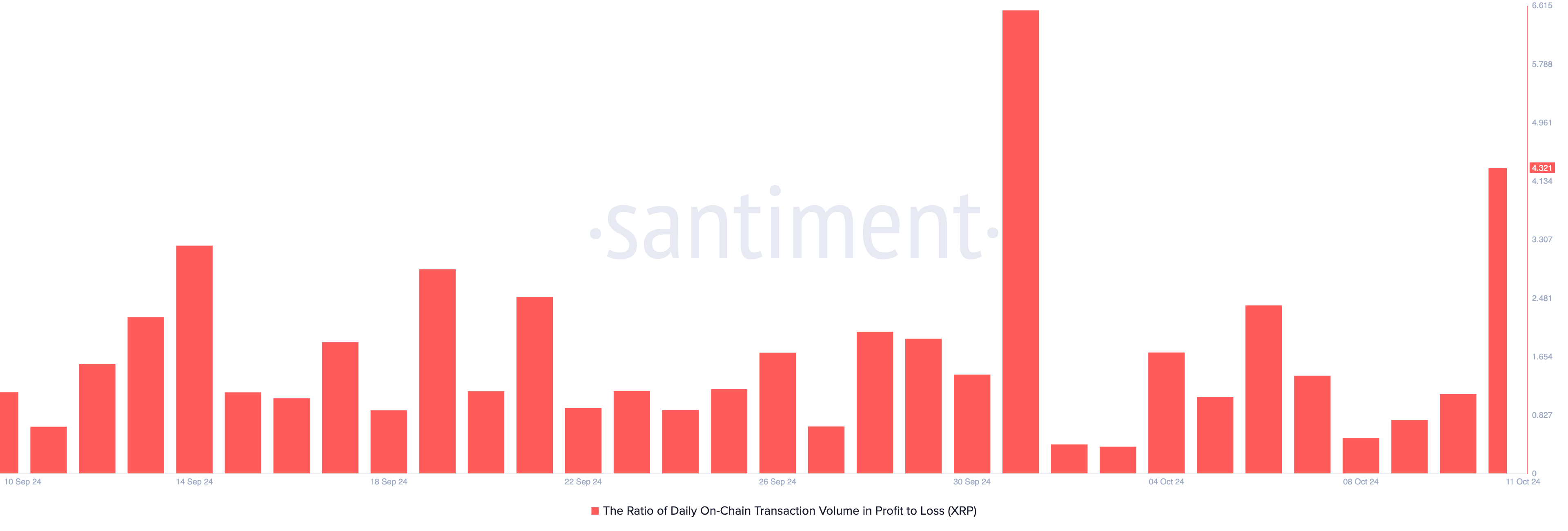 Inoltre, l’aumento del prezzo del 2% di XRP ha portato a un aumento nel conteggio delle transazioni redditizie. Venerdì, il rapporto tra il volume di transazioni di XRP in profitto e perdita è di 4,32, il più alto in dieci giorni. Questo significa che per ogni transazione che si è conclusa in perdita, 4,32 transazioni hanno generato un profitto.