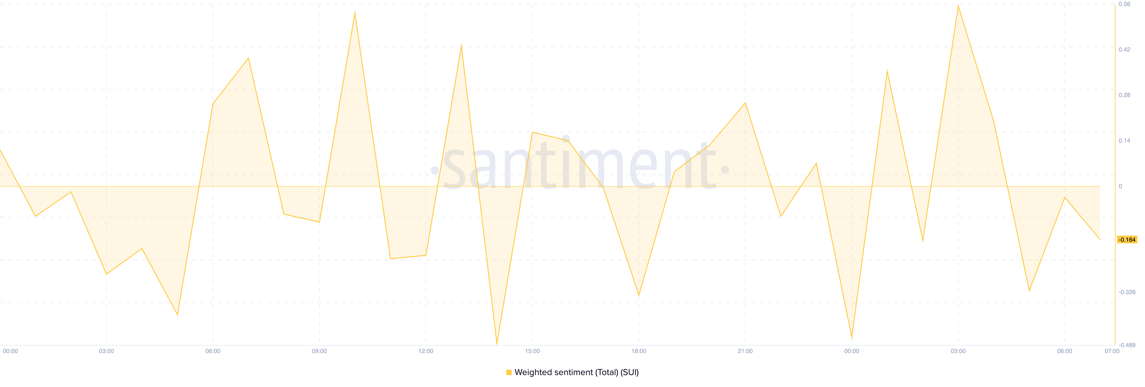 Oltre al calo dell’OI, il Sentimento Ponderato è sceso in territorio negativo. Questo indicatore traccia se c’è un alto livello di menzioni attorno a una blockchain o criptovaluta. Quando sale in territorio positivo, significa che la maggior parte dei commenti sul token sono positivi.