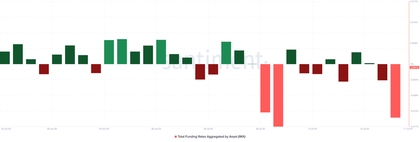 Tuttavia, molti nuovi operatori sul mercato dei derivati IMX hanno richiesto posizioni corte. Ciò si evince dai tassi di finanziamento prevalentemente negativi registrati dal 6 luglio.