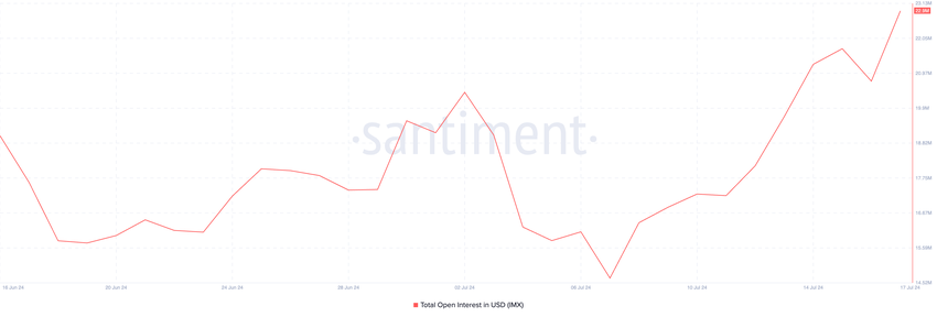 Da allora, l’open interest di IMX è cresciuto del 39%. Attualmente si trova al livello più alto dal 6 giugno, secondo i dati di Santiment.