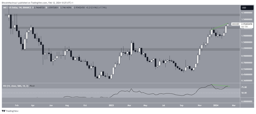 Il prezzo dell’IMX è aumentato rapidamente da ottobre 2023. Il movimento al rialzo è culminato con un massimo storico di 2,60 dollari a dicembre.