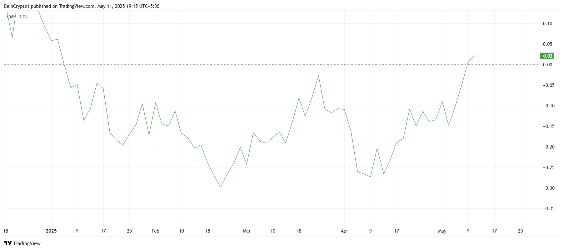 SponsoredGuardando al momentum del mercato più ampio, IMX sta mostrando segni positivi. Il Chaikin Money Flow (CMF) ha recentemente superato la linea zero per la prima volta dall’inizio del 2025.