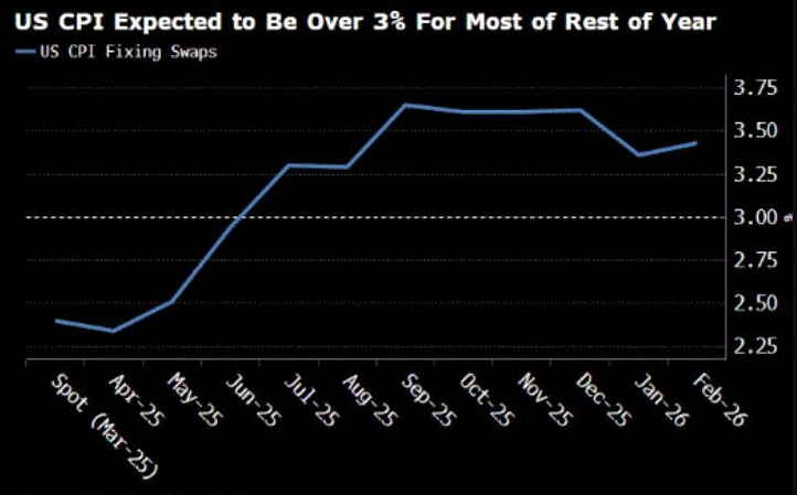 Tuttavia, in mezzo al caos commerciale, alcuni dicono che il CPI degli Stati Uniti potrebbe rimanere sopra il 3% per la maggior parte del resto dell’anno.