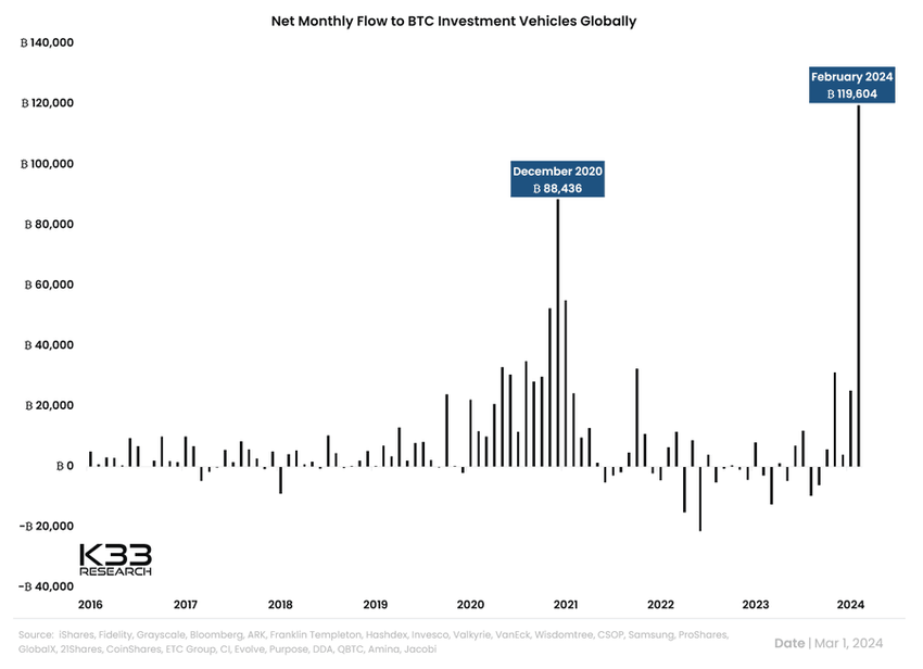 Il BTC ha registrato un’impennata di quasi il 50% all’inizio di quest’anno, soprattutto grazie all’introduzione dei Bitcoin Exchange-Traded Funds (ETF). Questi ETF hanno facilitato in modo significativo l’accessibilità della criptovaluta leader per gli investitori retail e istituzionali.