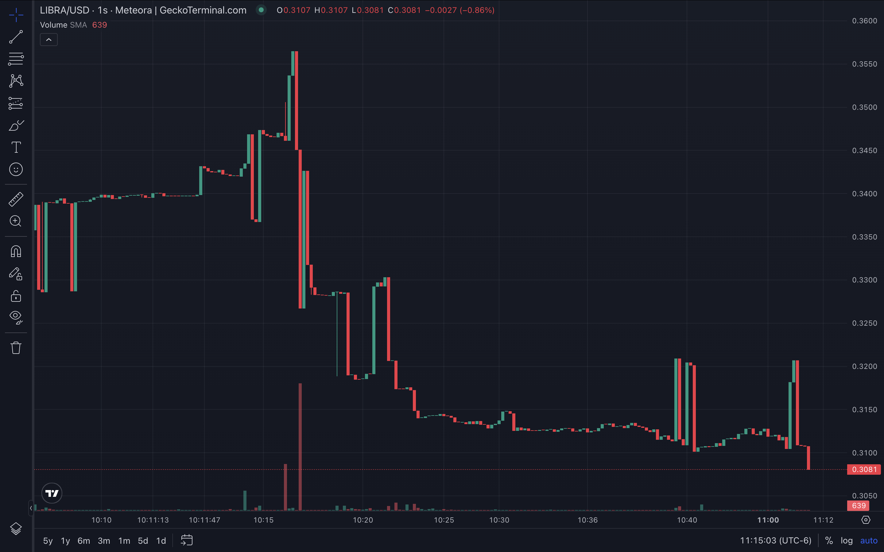 SponsoredDopo aver inizialmente negato legami con il rug pull, ha rilasciato un’intervista che tentava di ricostruire un po’ di credibilità. La trasmissione e i post di Milei hanno causato un lieve picco per LIBRA, ma tutto sta crollando.