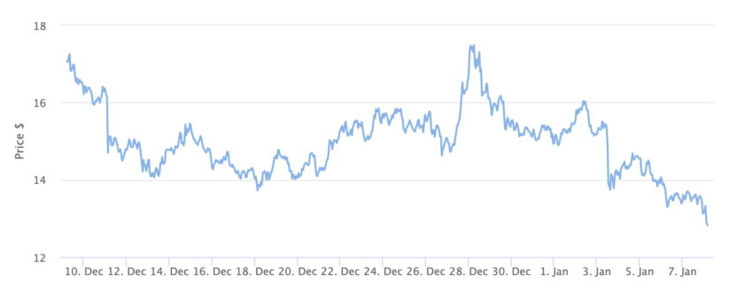 Il movimento al rialzo ha portato a un massimo di 16,58 dollari a novembre, ma da allora ha rallentato.