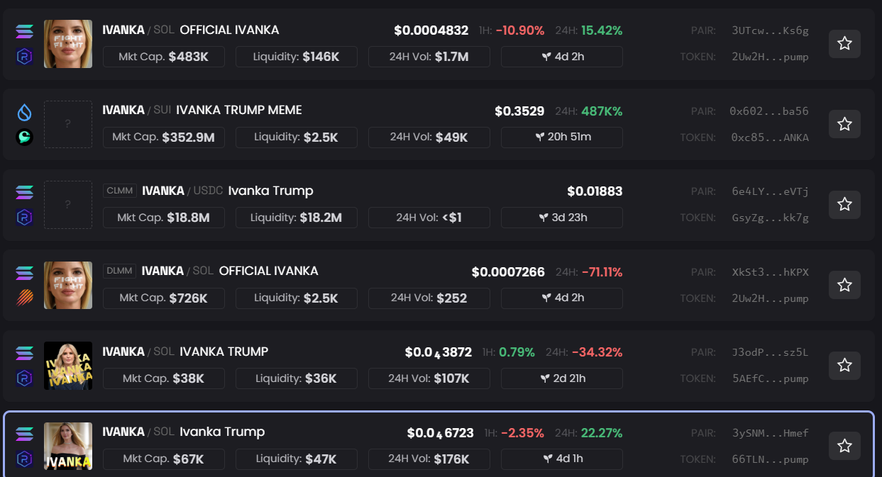 Notoriamente, attualmente sono disponibili per il trading sul mercato diversi falsi coin IVANKA.