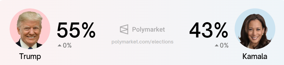In base ai dati di mercato delle previsioni di Polymarket, Harris mantiene una ragionevole possibilità contro Trump. Questo suggerisce che le strategie del partito continuano ad aggiungere valore alla sua candidatura presidenziale. Le sue probabilità di vittoria sono scese al 43% dopo aver stabilito un massimo storico, ma dimostra comunque una concorrenza agguerrita, se le quote di Polymarket sono sufficienti a confermarlo.