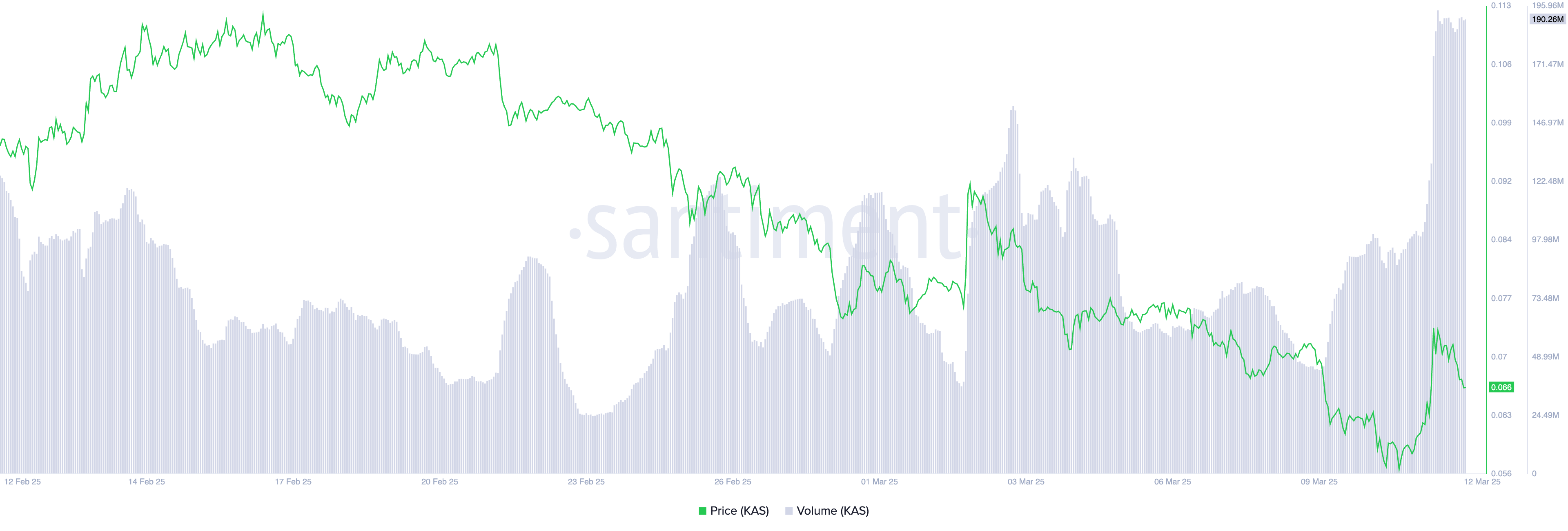 Un corrispondente aumento del volume di trading ha accompagnato i guadagni a doppia cifra di KAS. Durante il periodo di revisione, il volume di trading giornaliero della moneta ha totalizzato $189 milioni, aumentando di oltre il 95%.