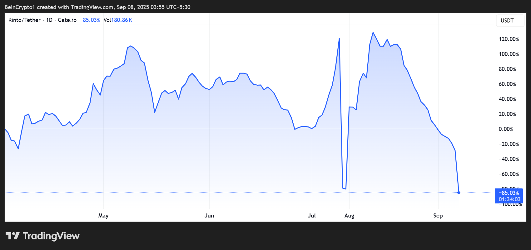 Sponsored SponsoredL’incidente ha causato un calo del prezzo di K di oltre il 90% il 10 luglio. Dall’annuncio della chiusura, il token che alimenta l’ecosistema Kinto è diminuito di oltre l’85%.