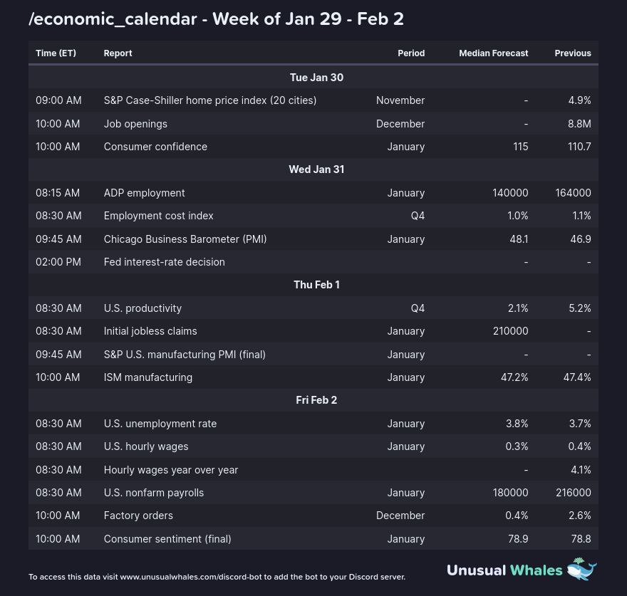 Il grande evento del calendario economico di questa settimana è la riunione della banca centrale statunitense per la determinazione dei tassi di interesse il 31 gennaio.