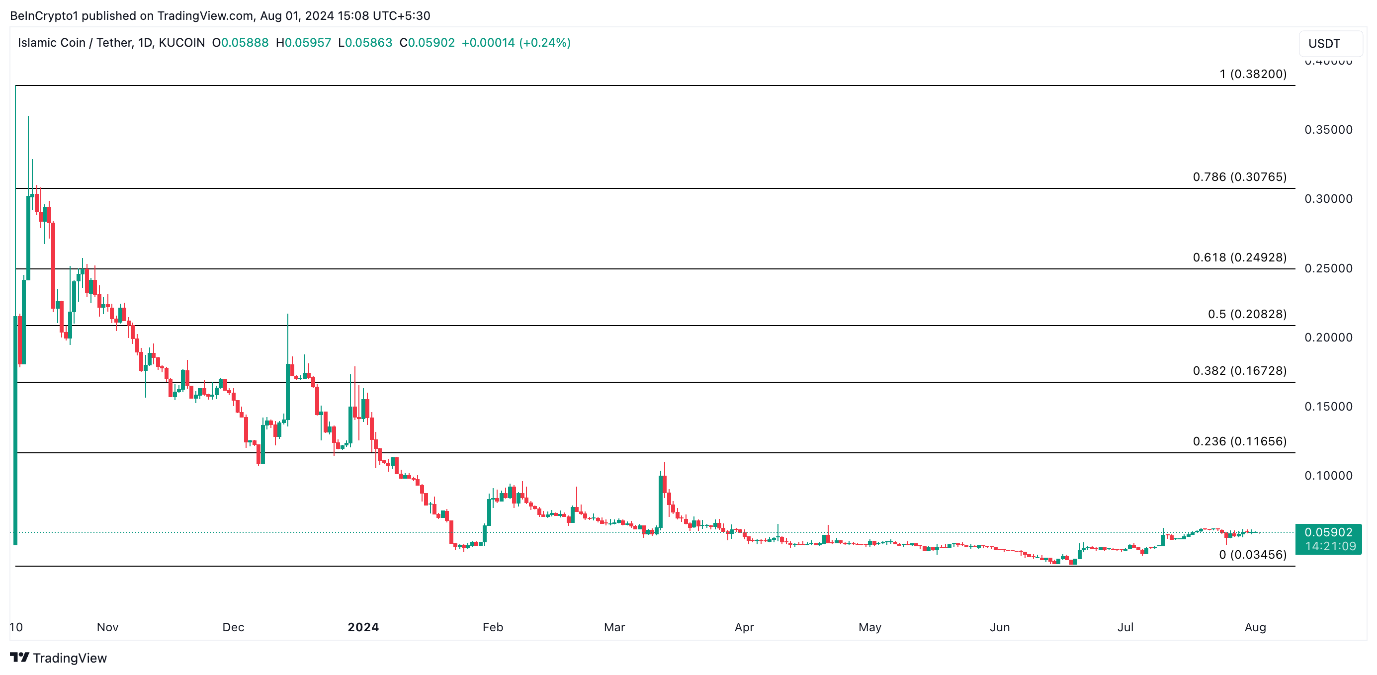 Se i rialzisti dell’ISLM non riuscissero a difendere il supporto, il prezzo potrebbe scendere a un minimo plurimensile di 0,034 dollari.