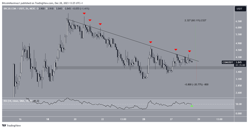 COM è un token BRC20, una narrazione che ha goduto di un successo significativo quest’anno con gli aumenti di Ordinals (ORDI) e SATS.