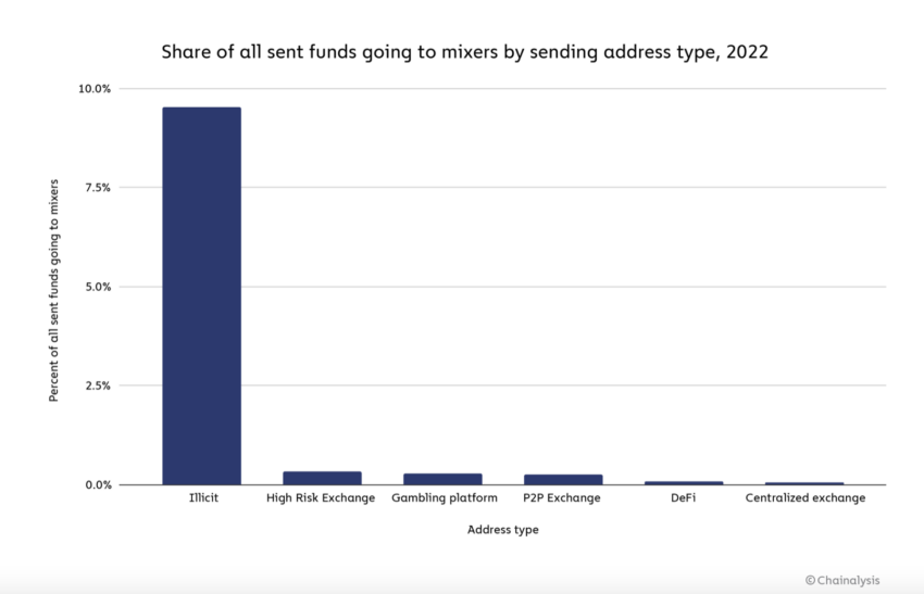 Nel frattempo, i dati hanno rivelato che quasi il 10% di tutte le criptovalute sotto entità maligne sono state riciclate attraverso un mixer nel 2022.