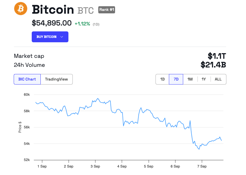 Attualmente, Bitcoin si è ripreso di circa il 4% dai minimi della scorsa settimana, ora scambiato vicino ai 55.000 USD.