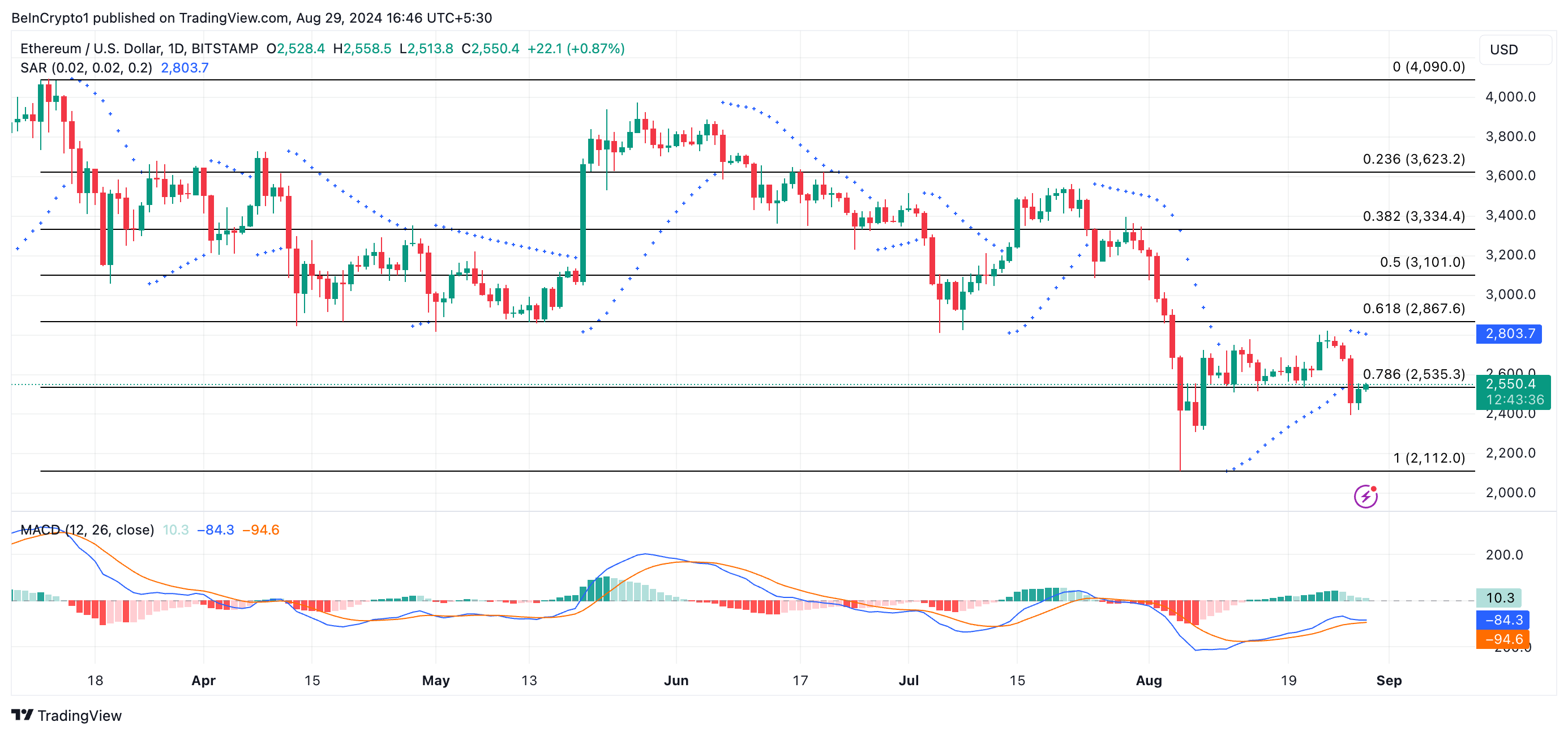 Se la pressione di vendita si intensifica, il prezzo di ETH potrebbe scendere verso il suo minimo del 5 agosto di 2.112 USD. Tuttavia, se la tendenza di mercato cambia e l’attività di acquisto aumenta, il prezzo potrebbe potenzialmente salire a 2.867 USD.
