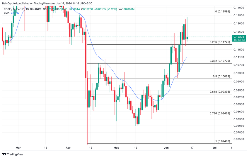 Il prezzo del token Oasis (ROSE) è aumentato dell’8% nell’ultima settimana. L’altcoin scambia attualmente a 0,12 dollari, il prezzo più alto dall’8 aprile.