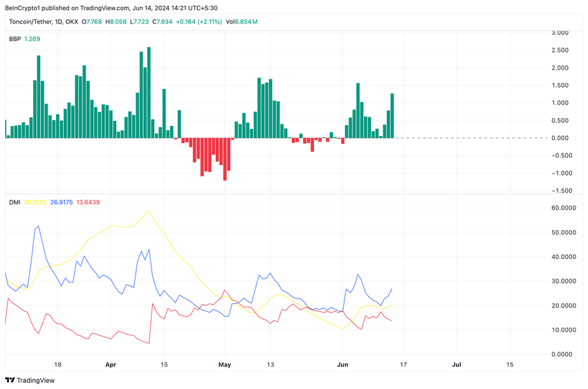 L’indice Elder-Ray positivo di TON conferma il suo obiettivo rialzista. Questo indicatore identifica la tendenza dei prezzi di un asset e le potenziali opportunità di acquisto o vendita sul mercato.
