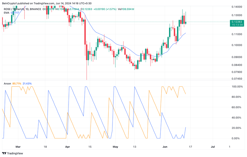 L’Aroon Up Line di ROSE è pari all’85,71%, a conferma dell’attuale tendenza al rialzo. Questo indicatore identifica la forza della tendenza di un asset e i potenziali punti di inversione dei prezzi.